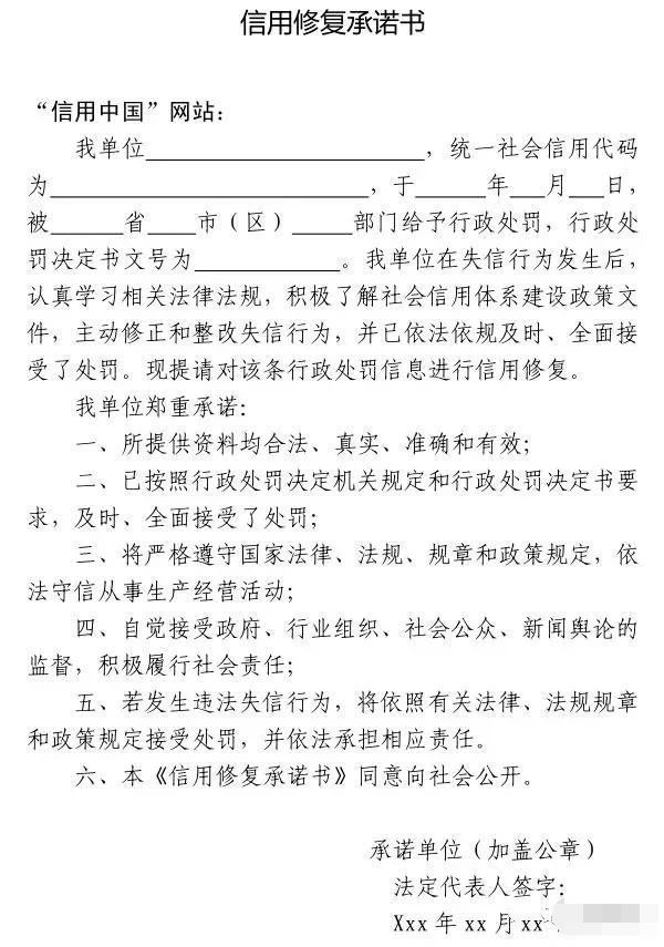 第一步,由失信企業(yè)提出申請(qǐng)。申請(qǐng)人向信用修復(fù)機(jī)構(gòu)提出書(shū)面信用修復(fù)申請(qǐng),需指出的是,這里的“信用修復(fù)機(jī)構(gòu)”是指依法對(duì)社會(huì)法人的違法行為作出行政處罰的行政主管部門、作出判決的司法機(jī)關(guān)。